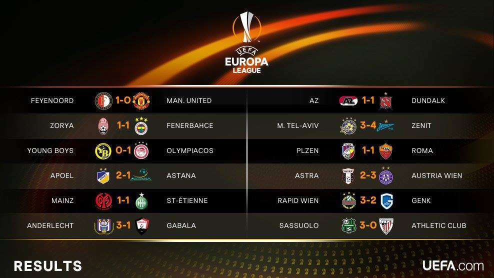 نتائج الدوري الأوروبي اليوم.. هزيمة مانشستر وتعادل لروما في غياب صلاح