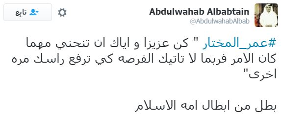 شهدت صحراء ليبيا المعارك التي خاضها عمر المختار وسطر عليها بدماء الشهداء أروع آيات العزة والجهاد، وكبد المجاهدون المحتلين خسائر لا تحصى في الأرواح والعتاد، وثبتوا أمام عدوهم مع أنهم لا يمتلكون سلاحًا كما يملك عدوهم من السلاح، لم يتسنى لأسد الصحراء أن يتخرج من كلية حربية أوعسكرية، ولم يتلق مهارته الحربية من جيش، إنما تربى عمر المختار في ساحات المعارك والجهاد، فحارب عمر المختار الطائرة بسيفه حتى امتلك الخوف قلوبهم بمجرد سماع اسم عمر المختار.