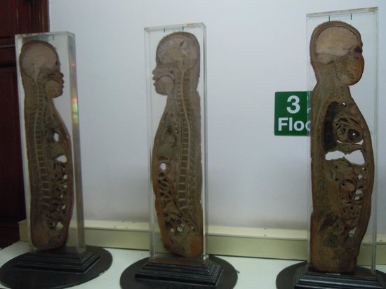 يتألف المتحف من 5 أجزاء منفصلة تغطي كل الكائنات، بدءًا من الطفيليات وانتهاءً بقسم الطب الشرعي الذي يعرض نماذج لأناس مقتولة، ويعد من أغرب المتاحف الموجودة حول العالم.