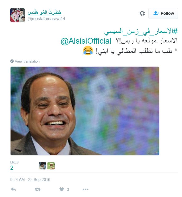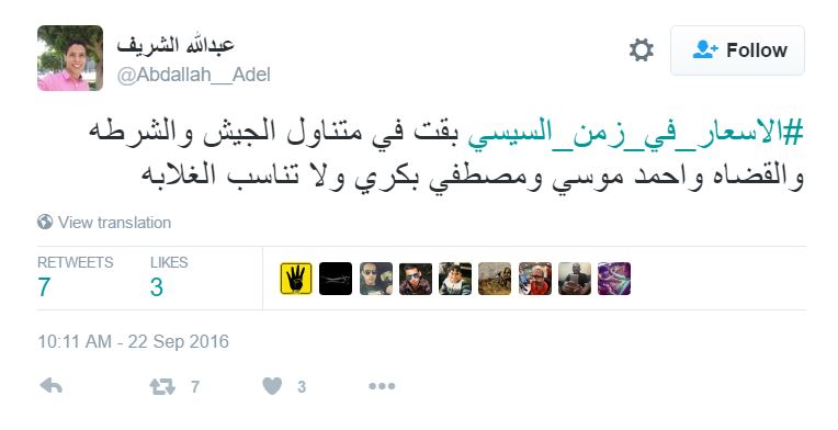 “الأسعار في زمن السيسي” يجتاح تويتر.. ورواد: في متناول الجيش والشرطة