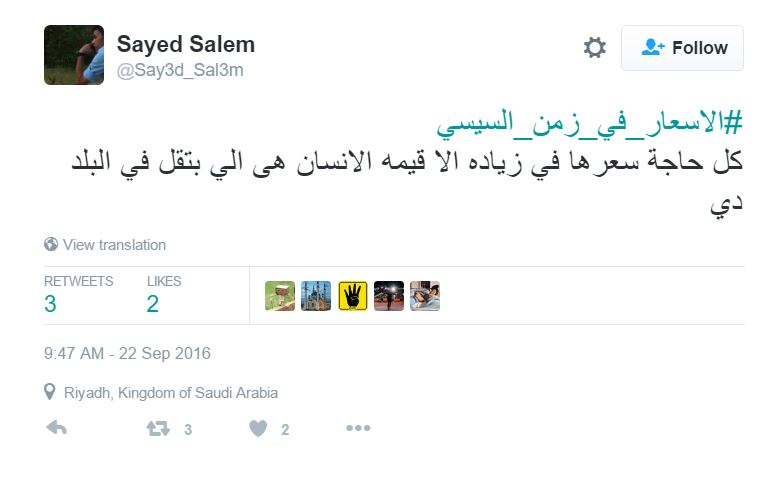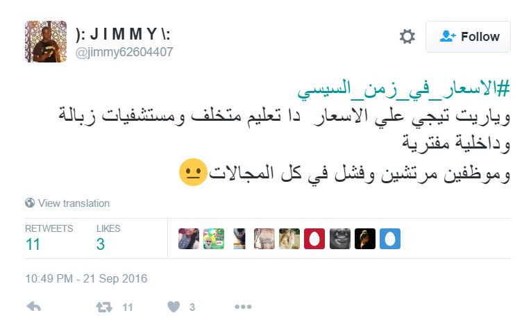 كما عبر  المشاركون في الهاشتاج عن الأزمات المتعددة للدولة، وأن الأسعار إحدى المشاكل الخاصة بالنظام، بالإضافة لتدهور الاقتصاد والسياحة وكافة قطاعات الخدمات.