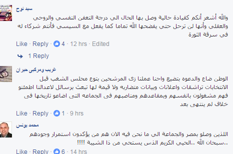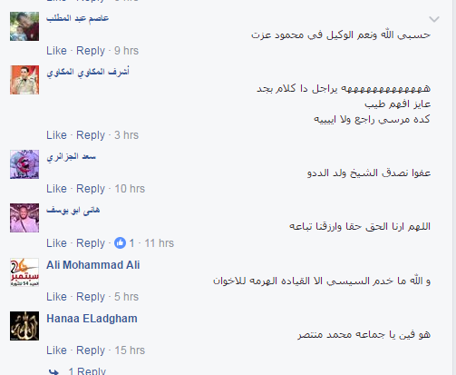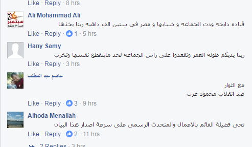 ولاقى البيان نقد وتأييد من شباب جماعة  الإخوان ومعارضي النظام العسكري وظهر ذلك عبر تعليقاتهم على المنشور الذي نشر على صفحة الإخوان وجاءت ردود الأفعال كالتي