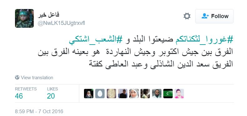 وشارك عدد كبير من المغردون في الهاشتاج، وعددوا من خلاله الأزمات التي تسبب فيها النظام الحالي للمواطنين، ونددوا بما آلت ألية البلاد في الفترة الأخيرة.