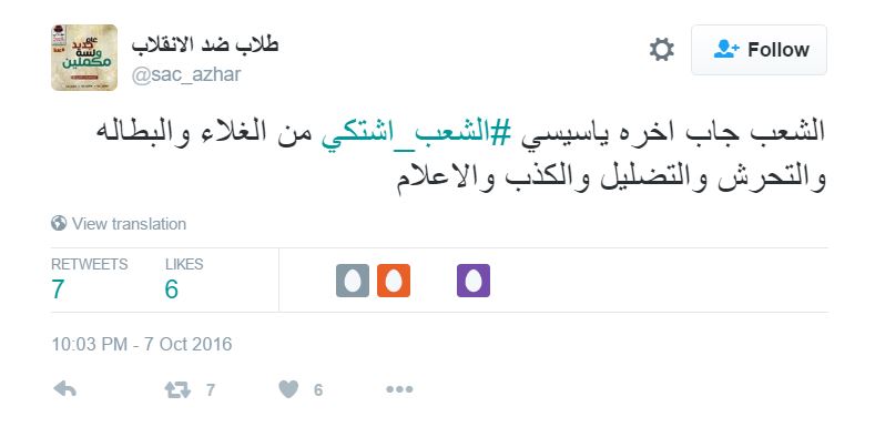 دشن رواد مواقع التواصل الاجتماعي “فيس بوك” و “تويتر”، هاشتاج تحت اسم “الشعب اشتكى” ، والذي حقق مستويات كبيرة من المشاركة خلال ساعات قليلة من انطلاقه.