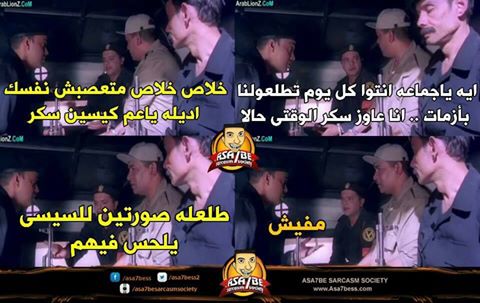 في ظل الأزمة الطاحنة التي يمربها المصريون حيث اختفاء السكر من الأسواق ومحلات التموين، واجه المواطنون هذة الأزمة بالسخرية، خاصة مع اعتبار النظام كل من يملك 10 كيلو من السكر محتكري سكر ومن جماعة الإخوان المسلمين.