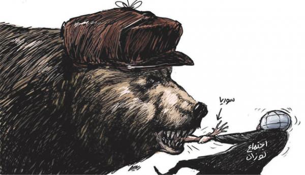 وعن فشل اجتماع “لوزان”، عبرت “الشرق الأوسط” من خلال الكاريكاتير التالي، عن فرض الدب الروسي سيطرته على سوريا.