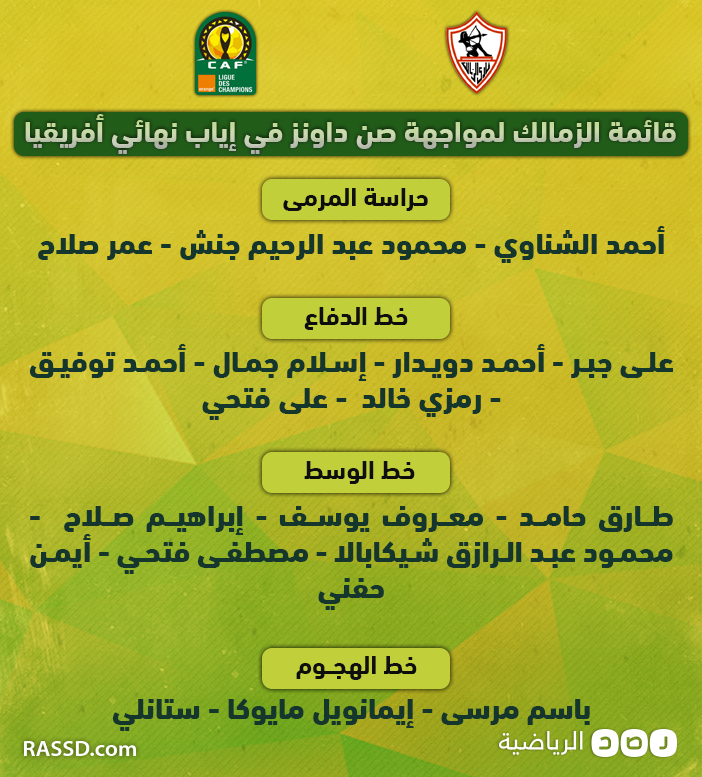 أعلن نادي الزمالك عن قائمة فريقه التي يخوض بها لقاء الإياب في نهائي بطولة دوري أبطال إفريقيا أمام صن داونز الجنوب إفريقي.