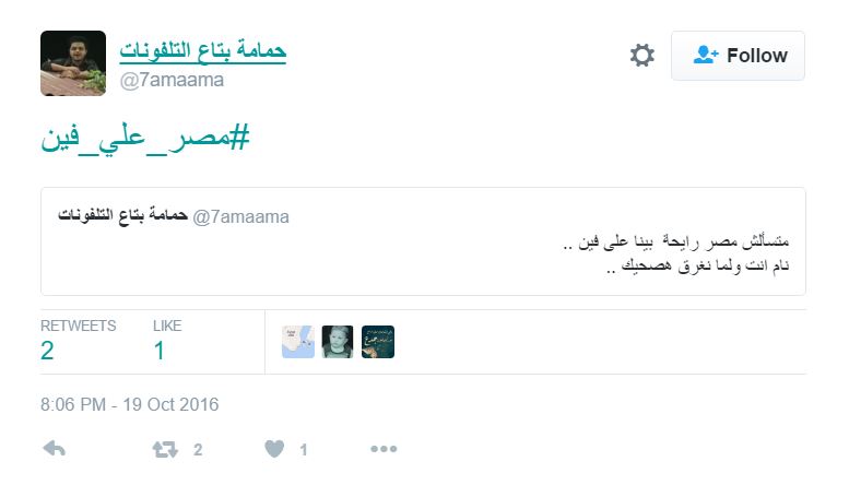 ودشن رواد مواقع التواصل الاجتماعي هاشتاج، عبر موقع التدوينات الصغيرة “تويتر”، وجهوا من خلاله سؤال “مصر على فين؟”، وجاءت التغريدات تعبر عن شعور المواطنين، بمدى التدهور في كافة المجالات.