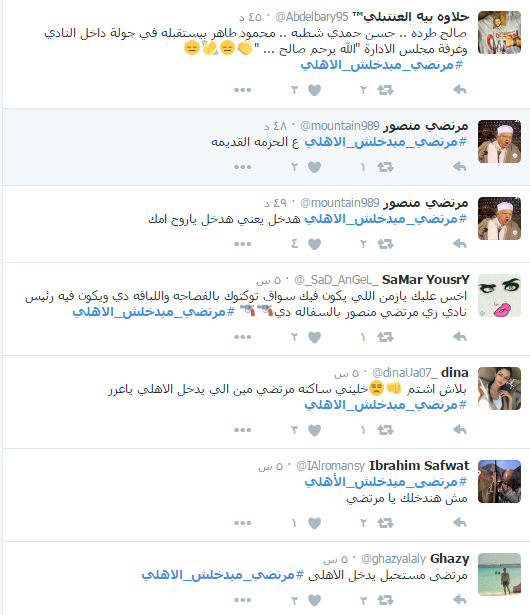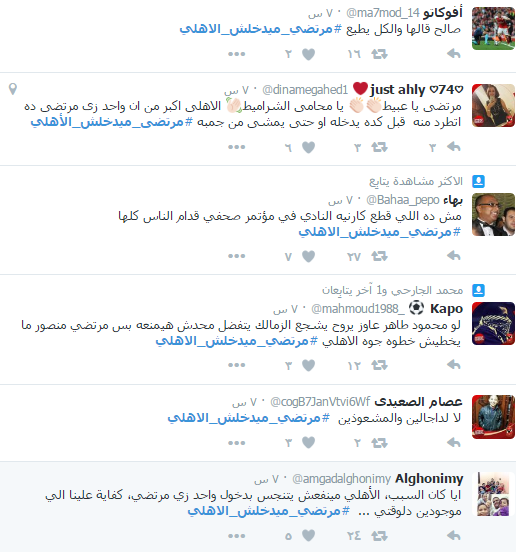 وفور تدشين الهاشتاج احتل المركز الرابع بين قائمة الهاشتاجات الأكثر تداولاً على “تويتر”، حيث رفض خلاله المغردون توجه مرتضى منصور إلى النادي الاهلي، مستاءين من مواقف مرتضى السابقة مع النادي الأهلي وجماهيره.