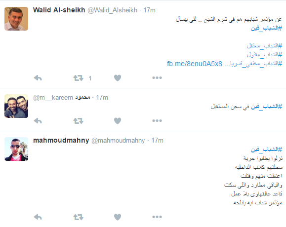 “الشباب فين” فعالية إلكترونية.. تويتر: “يا في السجون.. يا في القبور”