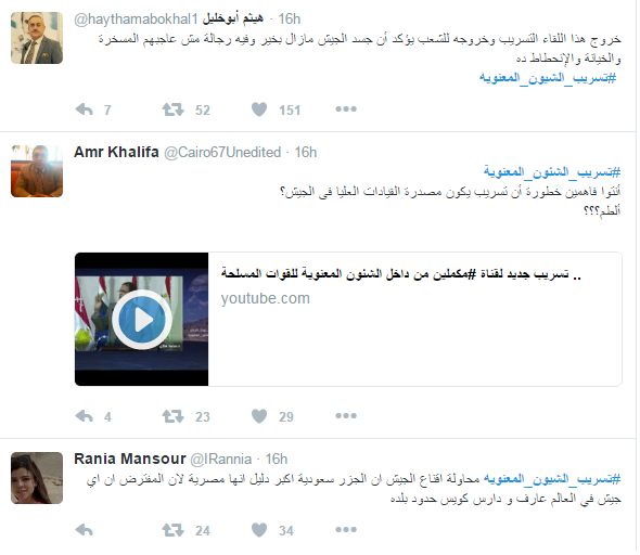 أذاعت قناة “مكملين” في برنامج “مصر النهاردة”، تسريبًا جديدًا من داخل الشؤون المعنوية، يخص قضية تيران وصنافير.