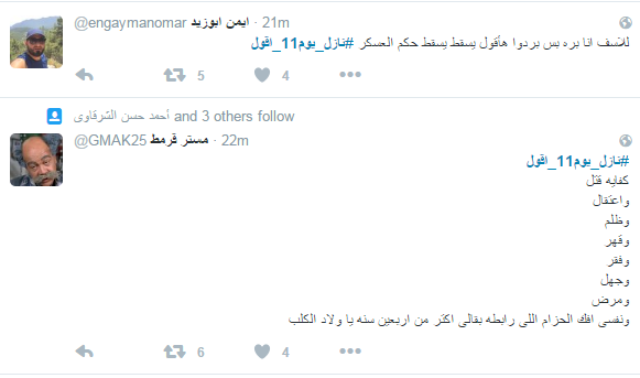 “#نازل_يوم11_اقول” يتصدر تويتر.. ومغردون: “العسكر لازم يمشي”