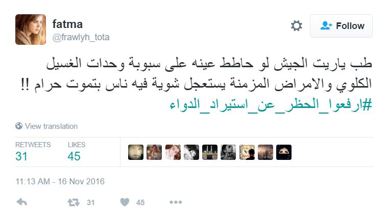 “ارفعوا الحظر عن استيراد الدواء” يتصدر تويتر.. ومغردون: سبوبة الجيش