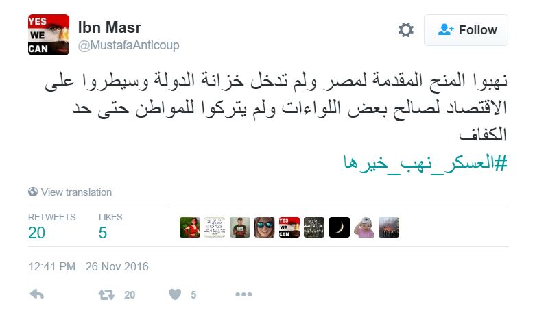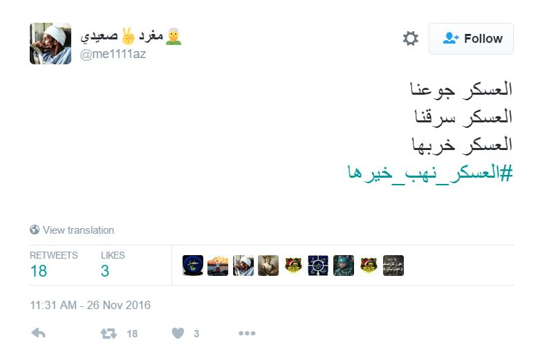 دشن رواد مواقع التواصل الاجتماعي، هاشتاج  تحت اسم “العسكر نهب مصر”، معبرين عن تدهور الاوضاع في ظل حكم العسكر.