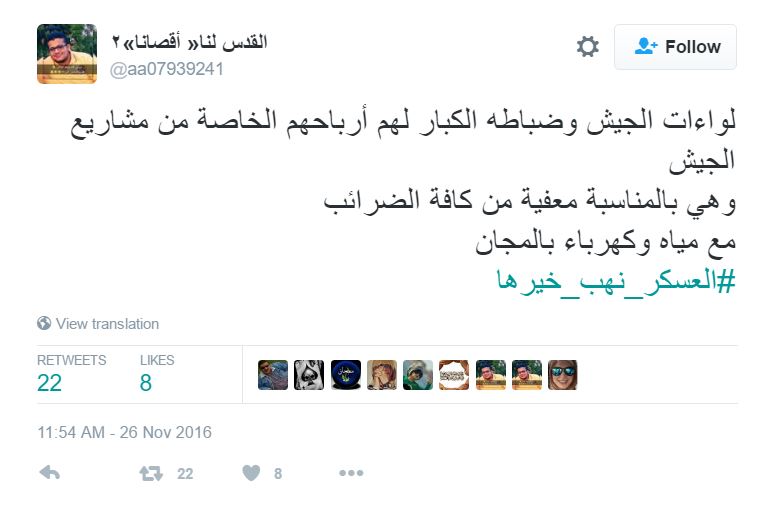 “العسكر نهب مصر” وسم يجتاح “تويتر”.. ومغردون: هم من يفتعلون الأزمات