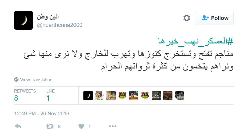 دشن رواد مواقع التواصل الاجتماعي، هاشتاج تحت اسم "العسكر نهب مصر"، معبرين عن تدهور الاوضاع في ظل حكم العسكر.