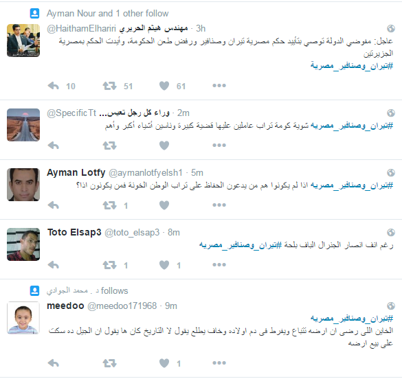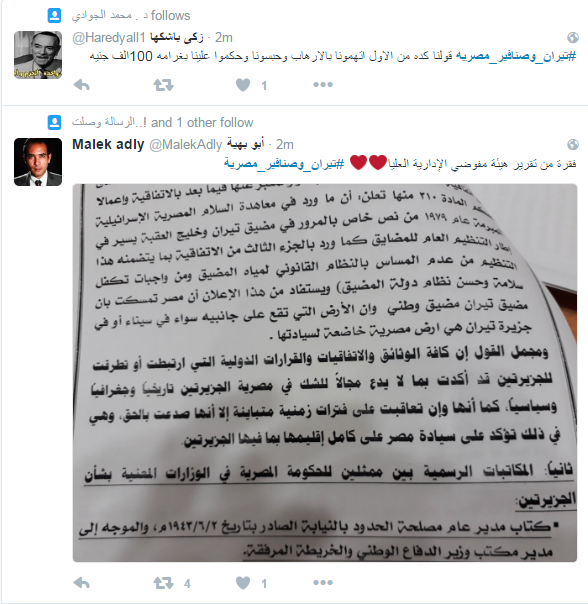 “#تيران_وصنافير_مصريه” هاشتاج يتصدر “تويتر”