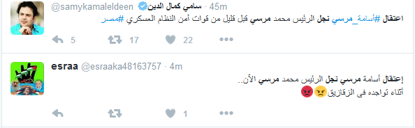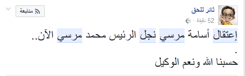 وكتب عبدالله مرسي، عبر صفحته الشخصية  “فيس بوك” :” تم اعتقال أخي أسامة، حسبنا الله ونعم الوكيل”