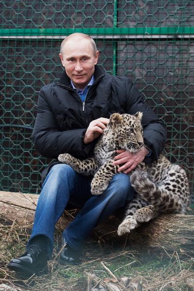 ويعرف عن بوتين حبه الشديد للحيوانات والتقطت له عدة صور وهو يركب خيولا ويسبح مع دلافين ويداعب فهدا.
