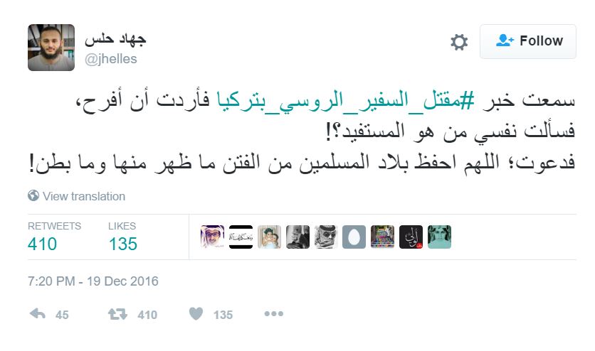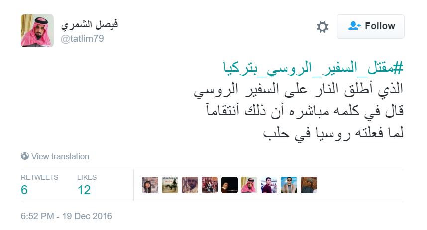 “#مقتل_السفير_الروسي_بتركيا” يتصدر “تويتر”.. ومغردون: تجرعوا من كأسكم
