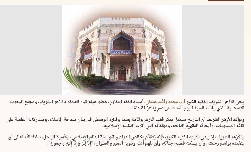 وأكد الازهر عبر صفحته الرسمية عبر “فيس بوك” أن التاريخ سيظل يذكر فقيد الأزهر، بعلمه وفكره الوسطي في بيان سماحة الإسلام، ومشاركاته العلمية على كافة المستويات، وأبحاثه الفقهية الماتعة، ومؤلفاته التي أثرت المكتبة الإسلامية… “إِنَّا لِلّهِ وَإِنَّا إِلَيْهِ رَاجِعونَ”.