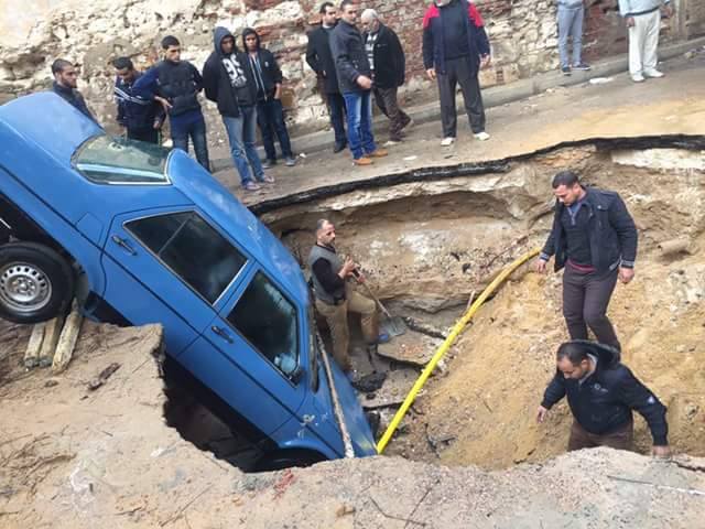 شهدت منطقة باكوس، شرق الإسكندرية، هبوطًا أرضيًا، في أحد شوارعها، أدى إلى سقوط إحدى السيارات بداخله.
