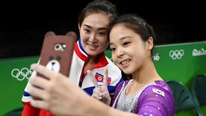 التقطت لاعبة الجمباز لكوريا الشمالية هونج أون جونج، صورة “سيلفي” مع منافستها لاعبة كوريا الجنوبية”، وعلى الرغم من الصورة الإيجابية التي تصدرها اللقطة، إلا أنها أثارت مخاوف الكثيرين حول مصير اللاعبة التي تحرم دولتها في كوريا الشمالية أي علاقة مع جارتها الجنوبية، ليتوقع البعض أن تواجه اللاعبة عقوبة الإعدام.