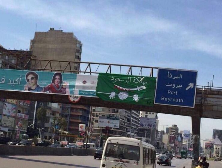 بعد توتر العلاقات بين الحكومة اللبنانية والمملكة السعودية، ووقف الدعم من جهة المملكة، انتشرت لافتات في شوارع لبنان، تسيء اليها.