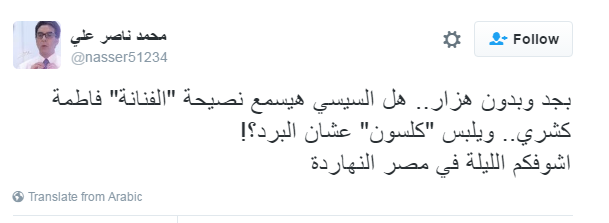 أثارت رسالة الممثلة فاطمة كشري، لعبدالفتاح السيسي، بـ”ارتداء الكلاسين”، ضجةً وسخرية كبيرين على مواقع التواصل الاجتماعي.
