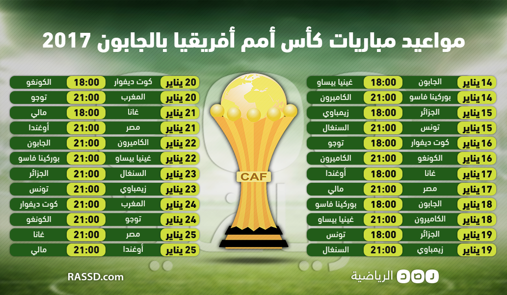 انفوجرافيك.. جدول مواعيد مباريات كأس أمم أفريقيا بالجابون