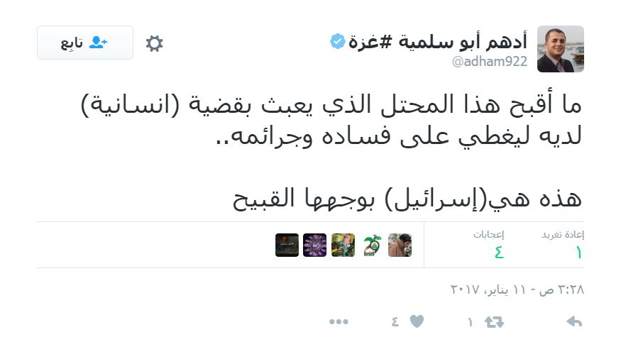 وتابع: “ما أقبح هذا المحتل الذي يعبث بقضية (إنسانية) لديه ليغطي على فساده وجرائمه.. هذه هي(إسرائيل) بوجهها القبيح”.