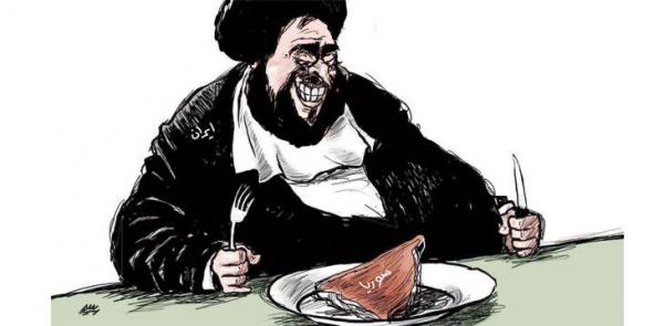 وعبر “الشرق الاوسط” عن محاولة سيطرة إيران على سوريا من خلال ميليشياتها ودعم نظام الأسد من خلال هذا الكاريكاتير:
