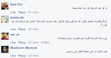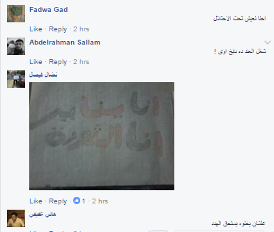 أبدى النشطاء استياءهم مؤكدين أن الغرض من هذه الشعارات كيد الثوار، وأنهم انتصروا على الثورة، فيما أشارأحد النشطاء إلى أن هذه الشعارات تعلو محطة قطار “رمسيس” أيضًا.
