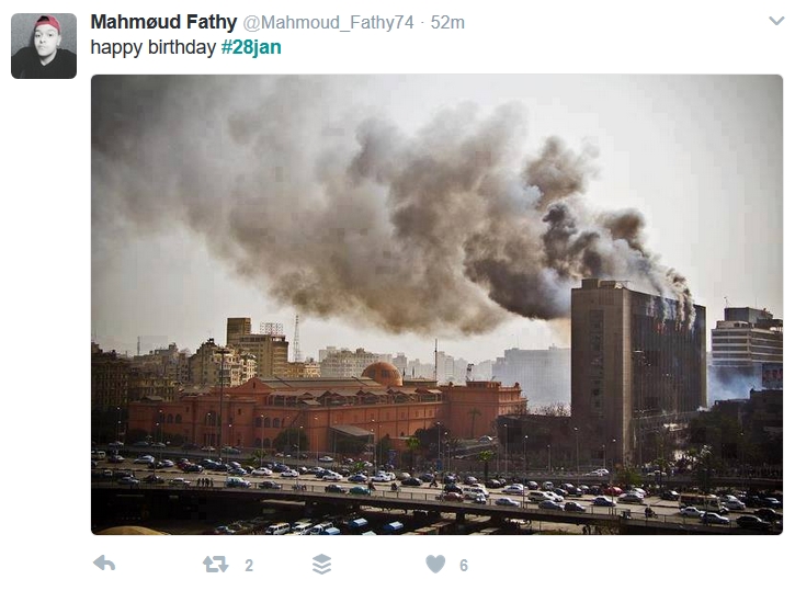 دشن عدد من النشطاء عبر “تويتر”، عدد من الأوسمة بمناسبة الذكرى السادسة لـ” جمعة الغضب”، منها:” 28 يناير” .. “#28jan”.. “جمعه الغضب”.