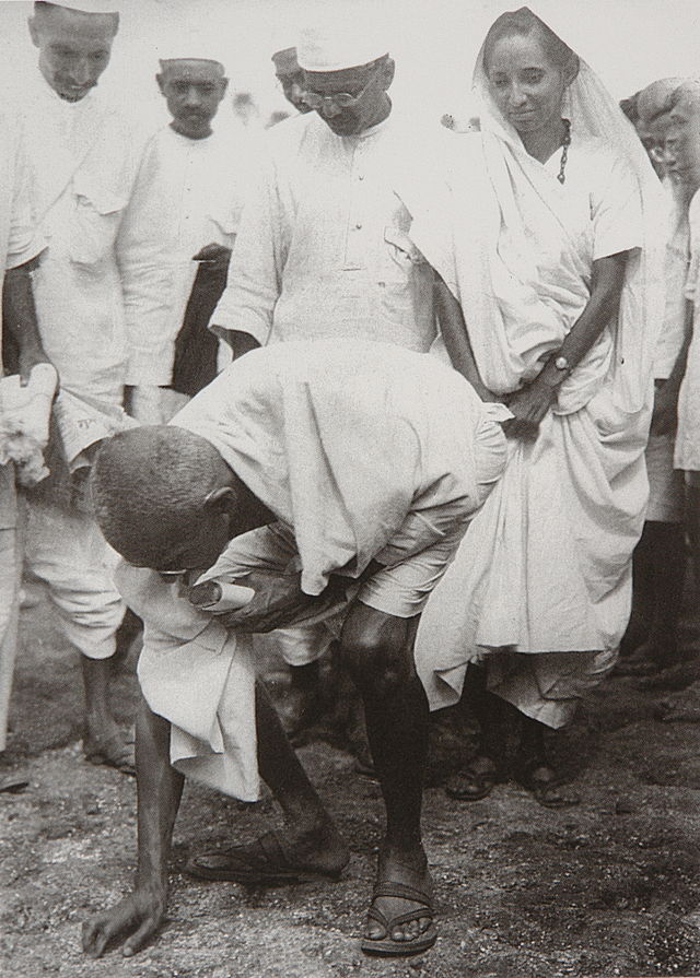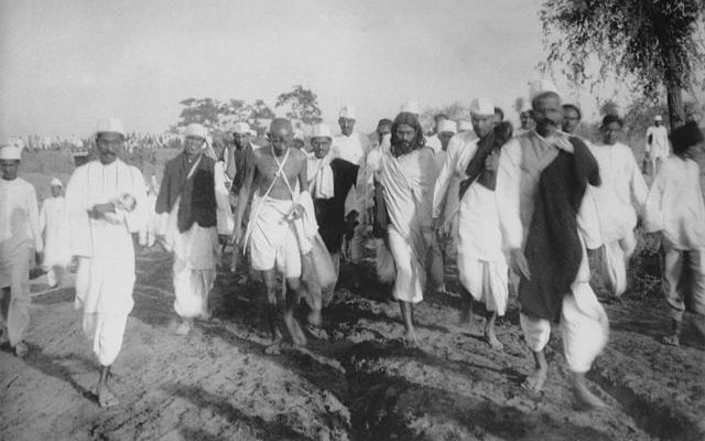 – قاد مسيرة شعبية توجه بها إلى البحر لاستخراج الملح من هناك، حيث كانت  القوانين البريطانية تحصر استخراج الملح بالسلطات البريطانية، وفي عام 1931 أنهى هذا العصيان بعد توصل الطرفين إلى حل وسط ووقعت “معاهدة دلهي”.