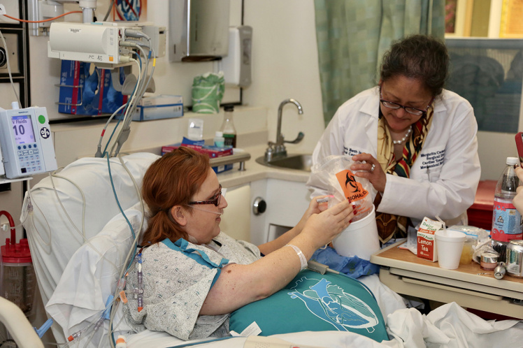 والتقطت السيدة الصور التذكارية لها مع قلبها التالف، عقب إفاقتها من العملية الناجحة، والتي تم استخراج قلبها خلالها.