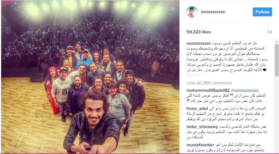 وفي السياق نفسه، كتب الممثل محمد أسامة، الشهير بـ”أوس أوس”، تدوينة على إنستجرام أقر فيها بما حدث وموجهًا شكره للجمهور كذلك، وقال: “بالرغم من التنظيم السيئ وسوء المعاملة من المنظمين إلا أن وجودكم وتشجيعكم وصوت ضحكاتكم طوال العرضين هو من أسباب تحملنا الألم وسوء المعاملة. تحياتي لكم أنا وفرقتي ومكملين عروضنا بإذن الله علشان خاطر جمهورنا المصري والعربي بدولتنا الثانية الكويت”.