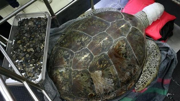 وقال الأطباء البيطريون إنهم يعتقدون أن عملية استخراج العملات، التي استغرقت سبع ساعات، هي أول عملية جراحية من نوعها في العالم.