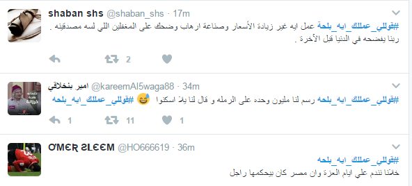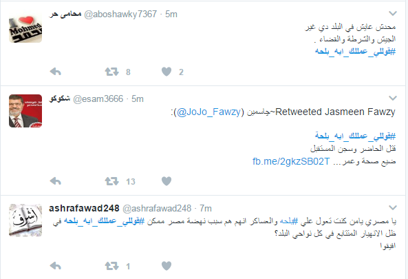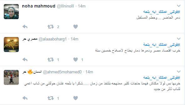وأكد المفردون أن عبدالفتاح السيسي دمر اقتصاد مصر، و”حطم الحاضر ودمر المستقبل” علي حد تعبيرهم.