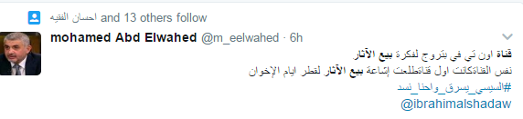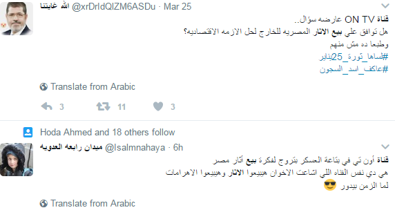 سادت حالة من الغضب بين رواد موقعي التواصل الاجتماعي “فيس بوك” و”تويتر” بعد استفتاء للصفحة الرسمية لفضائية “On E” على الموقع تتساءل خلاله “هل توافق على بيع الآثار المصرية للخارج لحل أزمة مصر الاقتصادية؟”.
