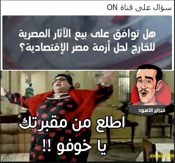 فيما نشرت صفحة “فبراير الأسود” كوميكًا يسخر من الاستفتاء، مستعينة بمشهد من فيلم “الناظر”، وكتبت على الصورة: “اطلع من مقبرتك يا خوفو”.