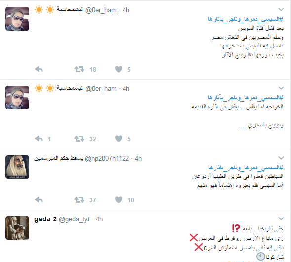 وسم “السيسي دمرها وتاجر بآثارها” يتصدر تويتر.. ومغردون:”عايشين في سفه”