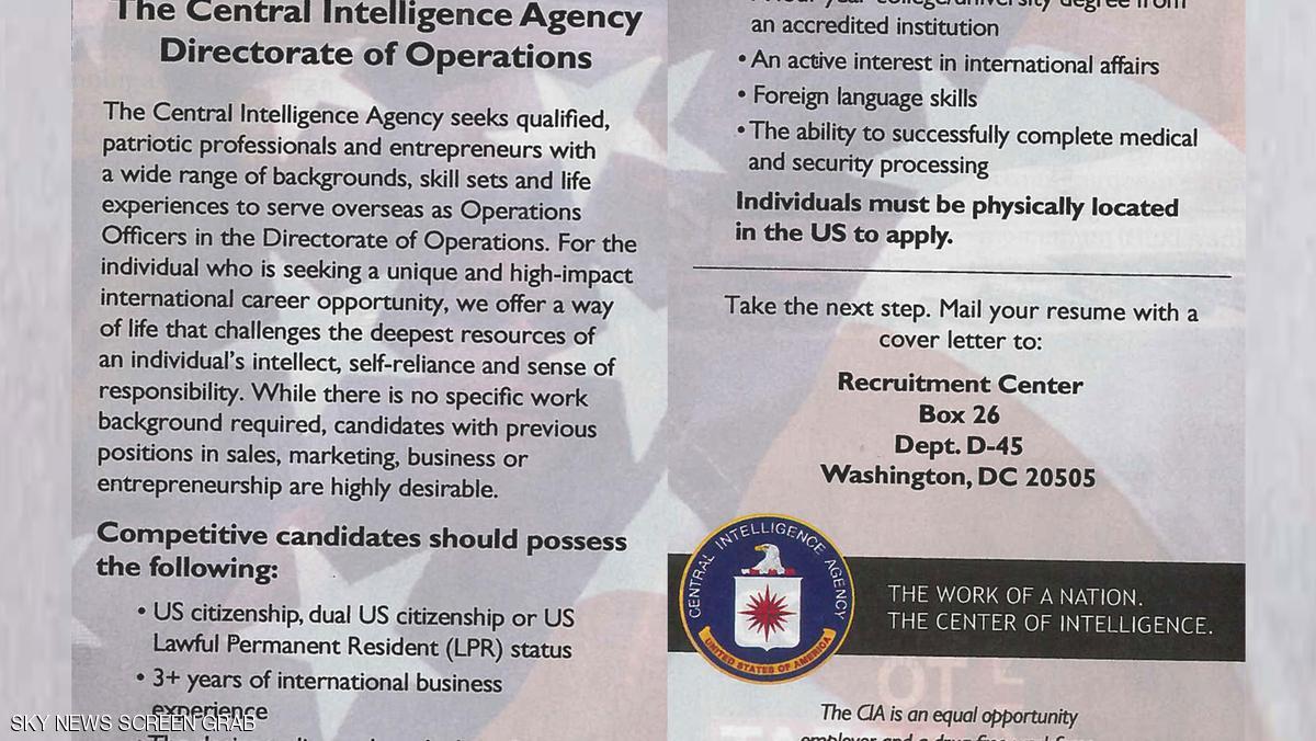 نشرت وكالة الاستخبارات الأميركية (سي آي إيه)، في مجلة الإكونوميست، إعلانا تطلب فيه موظفين لمهمة وصفتها بأنها فريدة من نوعها.