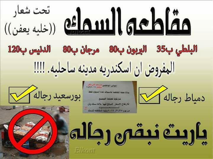 وأشار الأهالي أنهم لجؤوا إلى الأسماك، بعد الارتفاع الجنوني الذي طال مختلف السلع الغذائية والخضروات والدواجن، وطالبوا جميع المواطنين بمقاطعة شراء الأسماك تحت شعار “خليها تعفن” لمدة أسبوع علي الأقل.