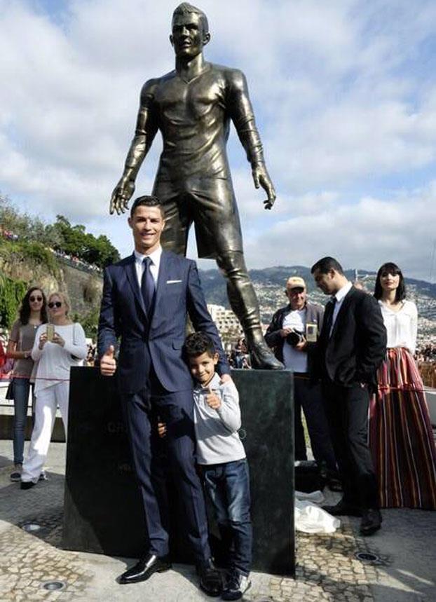 لم يكن تمثال رونالدو الذي كشف عنه مؤخرا، هو الأول الذي كرم به اللاعب البرتغالي الذي لقب بأفضل لاعب في العالم، بل سبق ودشن في 2014 تمثالًا له في جزيرة ماديرا البرتغالية مسقط رأسه، يصل ارتفاع التمثال البرونزي.