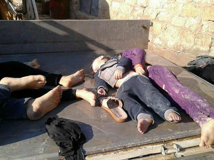 تداول رواد مواقع التواصل الاجتماعي، مقطع فيديو وصور لمقتل أسرة سورية بالكامل، جراء قصف الطائرات الروسية لمنطقة خان شيخون بريف إدلب.