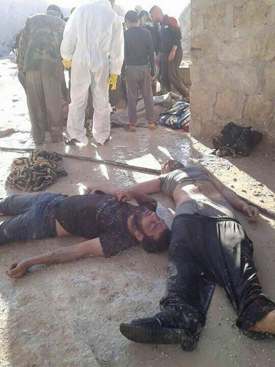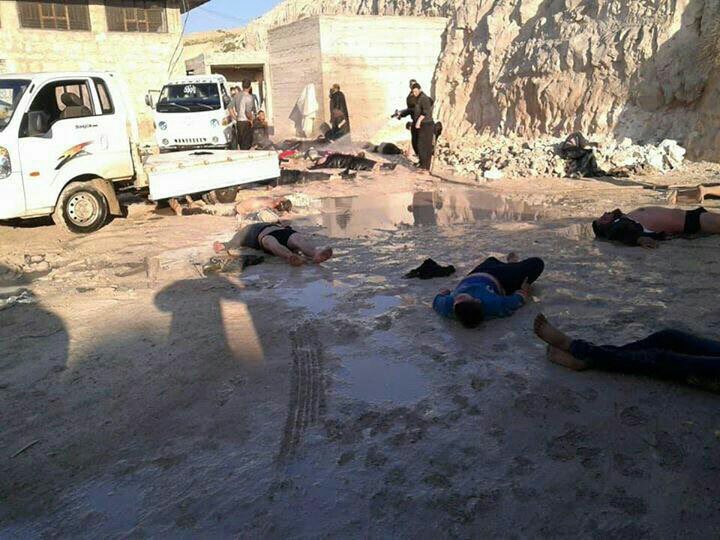 وكتب الإعلامي السوري والناشط السياسي، عمر مدنيه، قائلًا: “استشهاد عائلة كاملة أغلبها من الأطفال في خان شيخون بريف إدلب، بعد أن قامت الطائرات الحاقدة بقصفهم بالغازات السامة المحلله لقتلنا”.