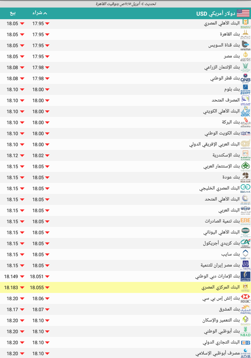 وفيما يلي جدول بأخر أسعار الدولار في البنوك