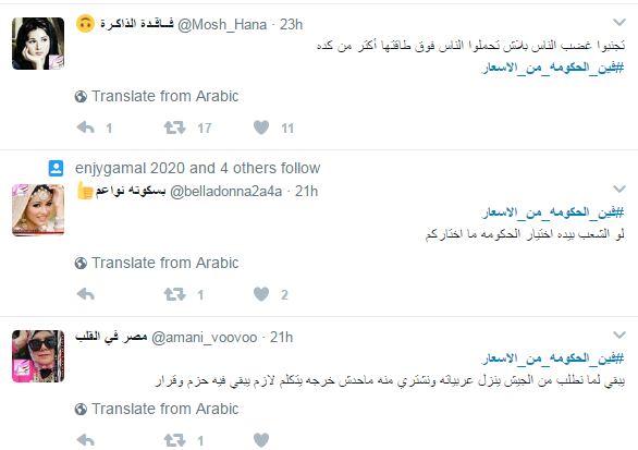 أثارت ارتفاعات الأسعار في الفترة الأخيرة موجة من الغضب على مواقع التواصل الاجتماعي؛ حيث دشن مغردون على موقع التدوين المصغر “تويتر” هاشتاج “#فين_الحكومه_من_الاسعار”، احتل صدارة الموقع بعد وقت قليل من تدشينه.