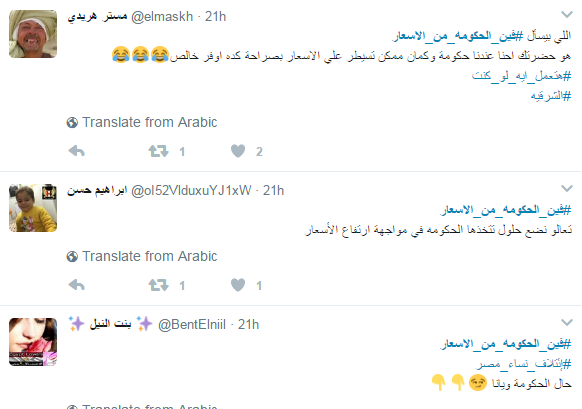 وعبّر المغردون في تعليقاتهم عن غضبهم من ارتفاع الأسعار لعديد من السلع في الفترة الأخيرة وما تبعه من تأثير سلبي على حياة المواطنين.